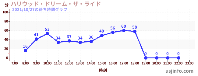 • ハリウッド・ドリーム・ザ・ライド$B$N(B2021年10月27日の待ち時間