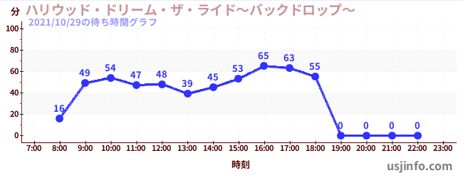 • ハリウッド・ドリーム・ザ・ライド〜バックドロップ〜$B$N(B2021年10月29日の待ち時間