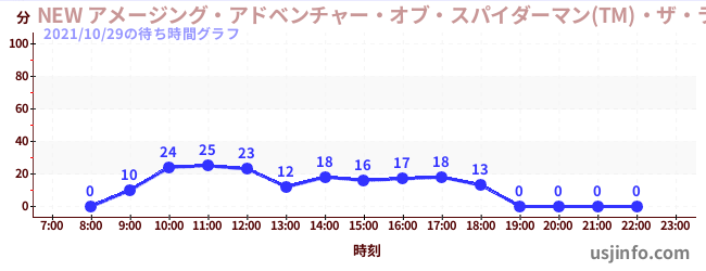 • NEW アメージング・アドベンチャー・オブ・スパイダーマン(TM)・ザ・ライド 4K3D$B$N(B2021年10月29日の待ち時間