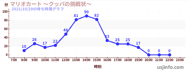 • マリオカート ~クッパの挑戦状~$B$N(B2021年10月29日の待ち時間