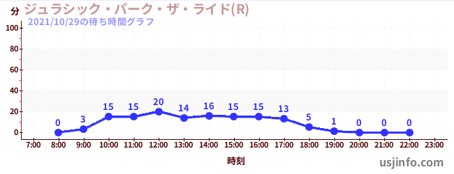 • ジュラシック・パーク・ザ・ライド(R)$B$N(B2021年10月29日の待ち時間