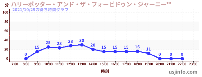 • ハリーポッター・アンド・ザ・フォービドゥン・ジャーニー™$B$N(B2021年10月29日の待ち時間