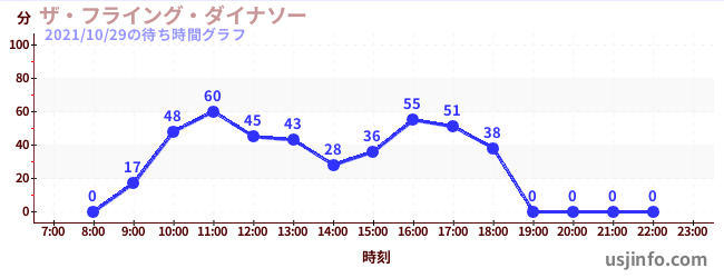 • ザ・フライング・ダイナソー$B$N(B2021年10月29日の待ち時間