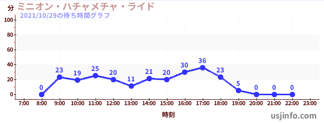• ミニオン・ハチャメチャ・ライド$B$N(B2021年10月29日の待ち時間