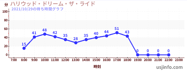 • ハリウッド・ドリーム・ザ・ライド$B$N(B2021年10月29日の待ち時間