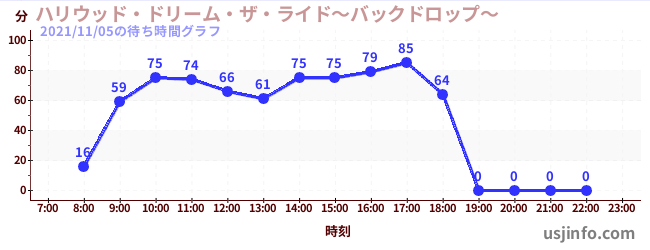 • ハリウッド・ドリーム・ザ・ライド〜バックドロップ〜$B$N(B2021年11月05日の待ち時間