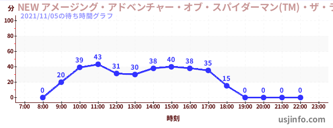 • NEW アメージング・アドベンチャー・オブ・スパイダーマン(TM)・ザ・ライド 4K3D$B$N(B2021年11月05日の待ち時間