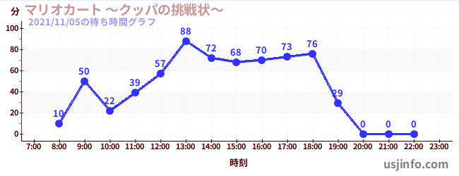 • マリオカート ~クッパの挑戦状~$B$N(B2021年11月05日の待ち時間