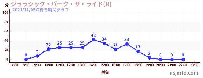 • ジュラシック・パーク・ザ・ライド(R)$B$N(B2021年11月05日の待ち時間