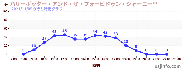• ハリーポッター・アンド・ザ・フォービドゥン・ジャーニー™$B$N(B2021年11月05日の待ち時間