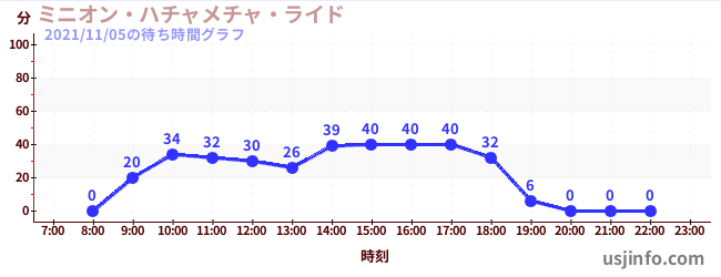 • ミニオン・ハチャメチャ・ライド$B$N(B2021年11月05日の待ち時間