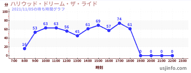 • ハリウッド・ドリーム・ザ・ライド$B$N(B2021年11月05日の待ち時間