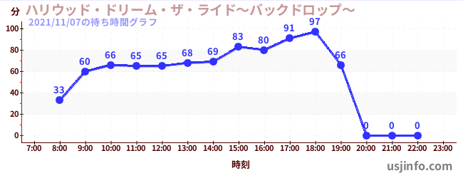 • ハリウッド・ドリーム・ザ・ライド〜バックドロップ〜$B$N(B2021年11月07日の待ち時間