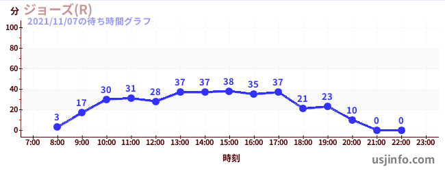 • ジョーズ(R)$B$N(B2021年11月07日の待ち時間