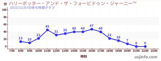 • ハリーポッター・アンド・ザ・フォービドゥン・ジャーニー™$B$N(B2021年11月07日の待ち時間