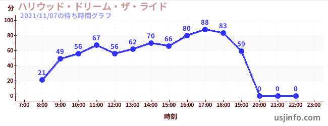 • ハリウッド・ドリーム・ザ・ライド$B$N(B2021年11月07日の待ち時間