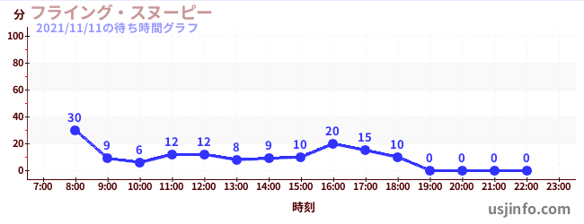 • フライング・スヌーピー$B$N(B2021年11月11日の待ち時間