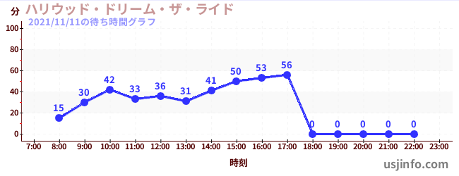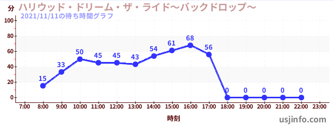 • ハリウッド・ドリーム・ザ・ライド〜バックドロップ〜$B$N(B2021年11月11日の待ち時間