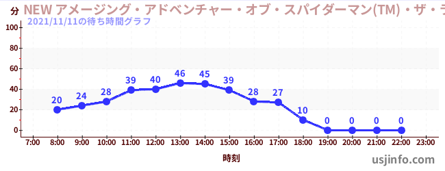 • NEW アメージング・アドベンチャー・オブ・スパイダーマン(TM)・ザ・ライド 4K3D$B$N(B2021年11月11日の待ち時間