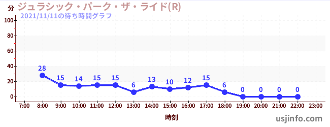 • ジュラシック・パーク・ザ・ライド(R)$B$N(B2021年11月11日の待ち時間