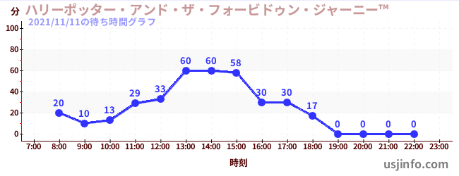 • ハリーポッター・アンド・ザ・フォービドゥン・ジャーニー™$B$N(B2021年11月11日の待ち時間