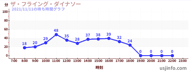 • ザ・フライング・ダイナソー$B$N(B2021年11月11日の待ち時間