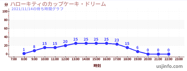 • ハローキティのカップケーキ・ドリーム$B$N(B2021年11月14日の待ち時間