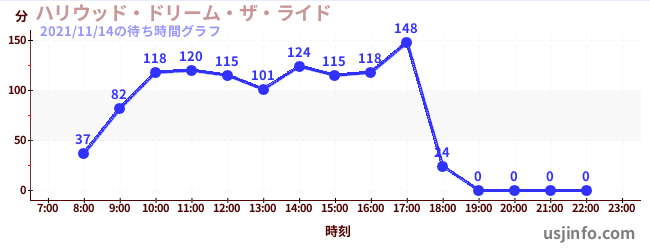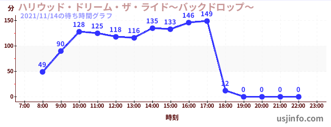 • ハリウッド・ドリーム・ザ・ライド〜バックドロップ〜$B$N(B2021年11月14日の待ち時間