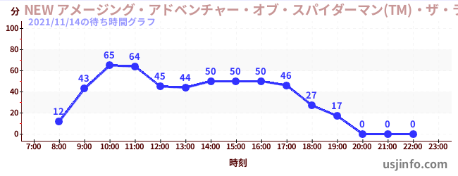 • NEW アメージング・アドベンチャー・オブ・スパイダーマン(TM)・ザ・ライド 4K3D$B$N(B2021年11月14日の待ち時間