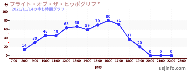 • フライト・オブ・ザ・ヒッポグリフ™$B$N(B2021年11月14日の待ち時間