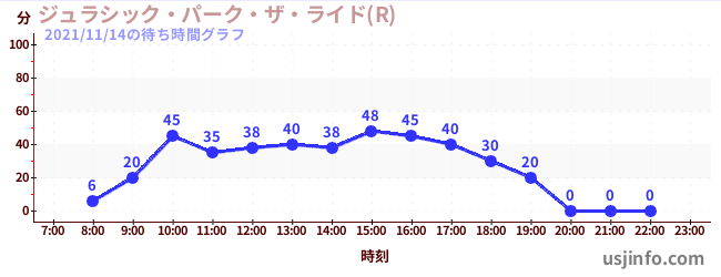 • ジュラシック・パーク・ザ・ライド(R)$B$N(B2021年11月14日の待ち時間