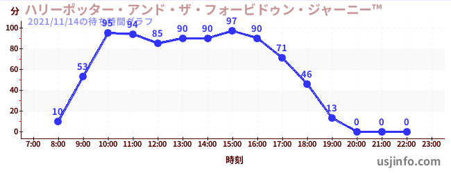 • ハリーポッター・アンド・ザ・フォービドゥン・ジャーニー™$B$N(B2021年11月14日の待ち時間