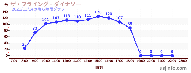• ザ・フライング・ダイナソー$B$N(B2021年11月14日の待ち時間