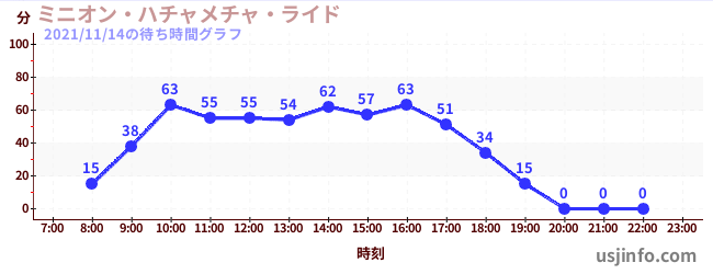 • ミニオン・ハチャメチャ・ライド$B$N(B2021年11月14日の待ち時間