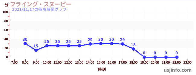 • フライング・スヌーピー$B$N(B2021年11月17日の待ち時間