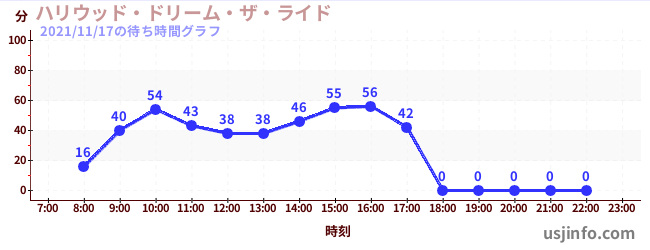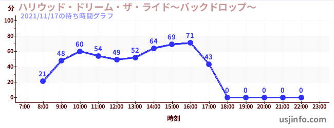 • ハリウッド・ドリーム・ザ・ライド〜バックドロップ〜$B$N(B2021年11月17日の待ち時間