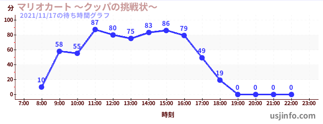 • マリオカート ~クッパの挑戦状~$B$N(B2021年11月17日の待ち時間