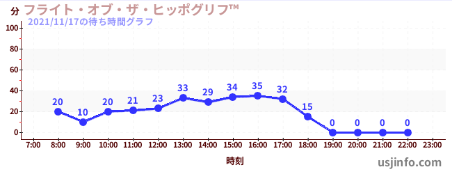 • フライト・オブ・ザ・ヒッポグリフ™$B$N(B2021年11月17日の待ち時間