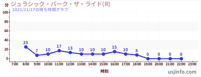 • ジュラシック・パーク・ザ・ライド(R)$B$N(B2021年11月17日の待ち時間
