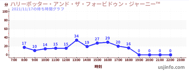 • ハリーポッター・アンド・ザ・フォービドゥン・ジャーニー™$B$N(B2021年11月17日の待ち時間