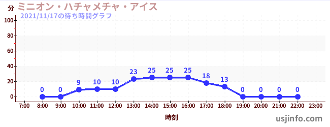 • ミニオン・ハチャメチャ・アイス$B$N(B2021年11月17日の待ち時間