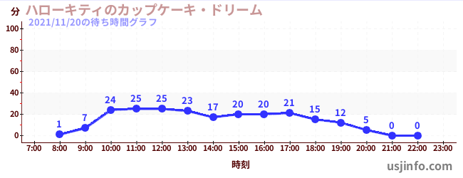 • ハローキティのカップケーキ・ドリーム$B$N(B2021年11月20日の待ち時間