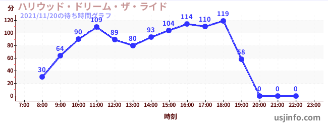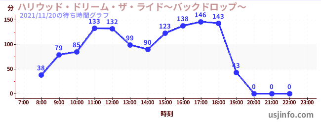 • ハリウッド・ドリーム・ザ・ライド〜バックドロップ〜$B$N(B2021年11月20日の待ち時間