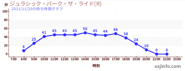 • ジュラシック・パーク・ザ・ライド(R)$B$N(B2021年11月20日の待ち時間