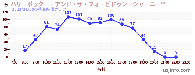 • ハリーポッター・アンド・ザ・フォービドゥン・ジャーニー™$B$N(B2021年11月20日の待ち時間