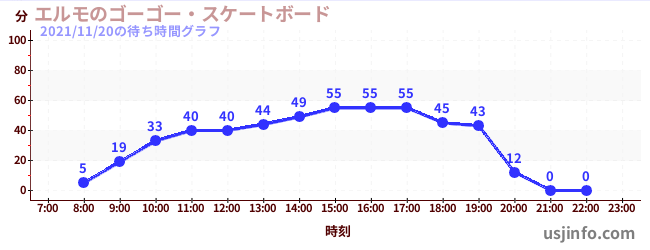 • エルモのゴーゴー・スケートボード$B$N(B2021年11月20日の待ち時間
