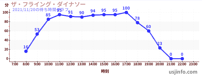 • ザ・フライング・ダイナソー$B$N(B2021年11月20日の待ち時間