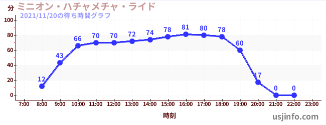 • ミニオン・ハチャメチャ・ライド$B$N(B2021年11月20日の待ち時間