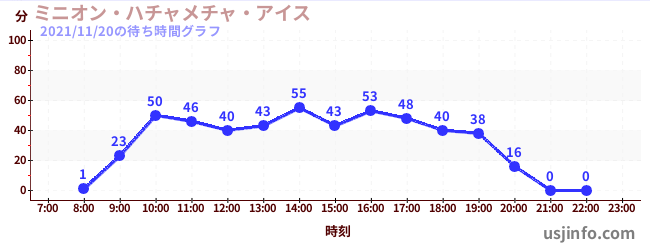 • ミニオン・ハチャメチャ・アイス$B$N(B2021年11月20日の待ち時間