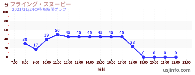 • フライング・スヌーピー$B$N(B2021年11月24日の待ち時間